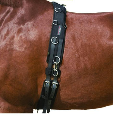 Kieffer Surcingle, renowned for comfort, is made with German styling and quality materials. This nylon surcingle features a soft, padded wither panel to protect the saddle or horse. Numerous rings offer a multitude of attachment options for your training equipment. Includes belly band with double buckles at both ends for complete adjustability. With billet keepers and stainless steel fittings. Black.