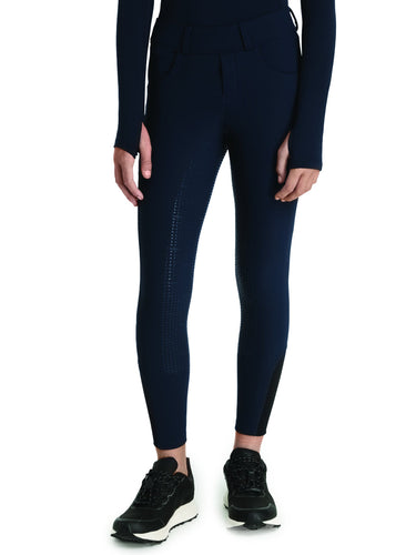 Make cold-weather rides much more pleasant with the LeMieux® Young Rider Ella Bregging. Get the smart and structured breech look, with belt loops and faux fly zip. The technical fabric has a brushed inner lining for extra warmth. A full silicone printed seat offers stability in the saddle. A scoop pocket on the leg is the ideal easy-access place for your phone, and a side zipped pocket is perfect for valuables. The lower leg is cleverly designed with no inside leg seam for maximum comfort and close contact. Tapered seams deliver a flattering fit, and a thin mesh sock makes for reduced bulk under thick socks and tall boots.