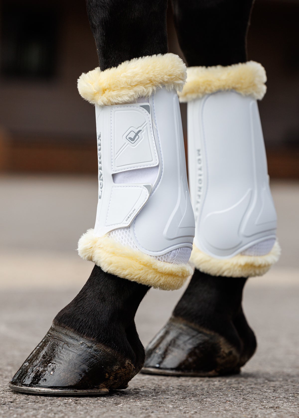 The LeMieux® Motionflex Dressage Boot with Simuwool offers lightweight, flexible and durable leg protection. The strong shell has faux-fur edging which traps dust and debris. A close-fitting, breathable design, this boot boasts a molded TPU tendon-and-joint guard to protect your horse’s legs. The guard also offers extra support when your horse is in motion.