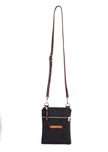 Perri’s® Champion Crossbody Bag with Leather Accents and Nameplate was created with horse show and year-end awards in mind. It features a leather accent patch to which the personalized nameplate can be attached.