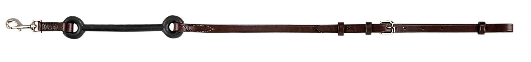 Tory Leather Dog Bone Side Reins are made in America from high-quality 3/4" wide American leather. These all-leather side reins feature a rubber dog bone insert to allow give. Buckles allow them to adjust from 40" to 44". Trigger snap ends.