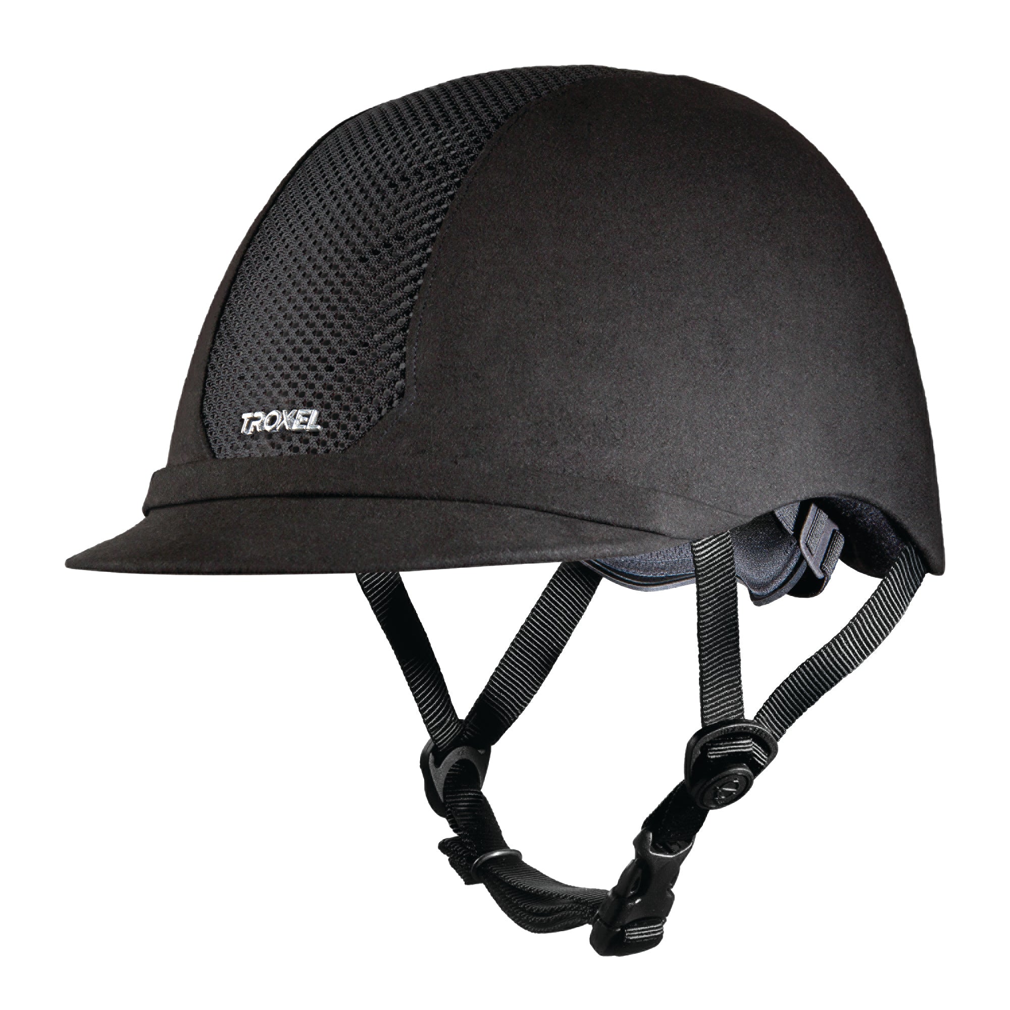 The Troxel® ES Helmet** offers modern, low-profile styling and comfort. The performance microfiber finish stands up to wear while the ultra slim design flatters the rider. Mesh-covered vents allow cooling airflow.